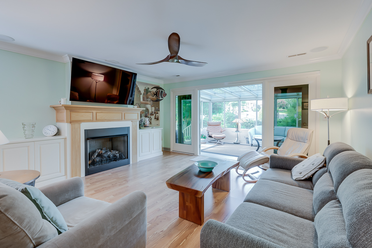 - Living room has a ventless gas log fireplace